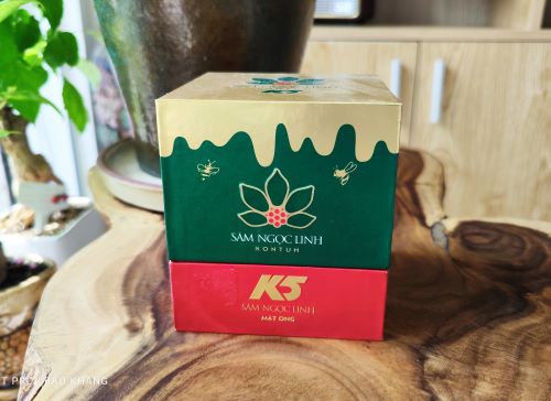 Sâm Ngọc Linh trên 10 năm tuổi trồng hoàn toàn tự nhiên dưới tán rừng già, hấp thụ linh khí của trời, dưỡng chất của đất, sắt lát ngâm cùng mật ong rừng trên núi Ngọc Linh tạo sản phẩm ngâm mật đầy đủ dưỡng chất với 52 hoạt chất saponin.